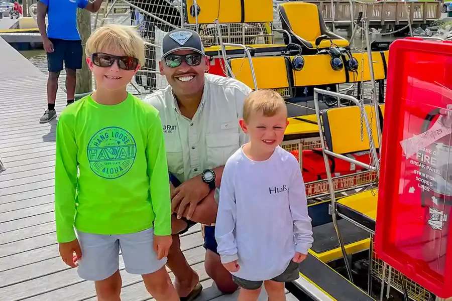 For a truly unique experience, you can book a private charter to ride on the Williamsburg Wild Airboat. Create everlasting memories with family and friends. Adults and children 4 years of age or older are welcome on the tour.